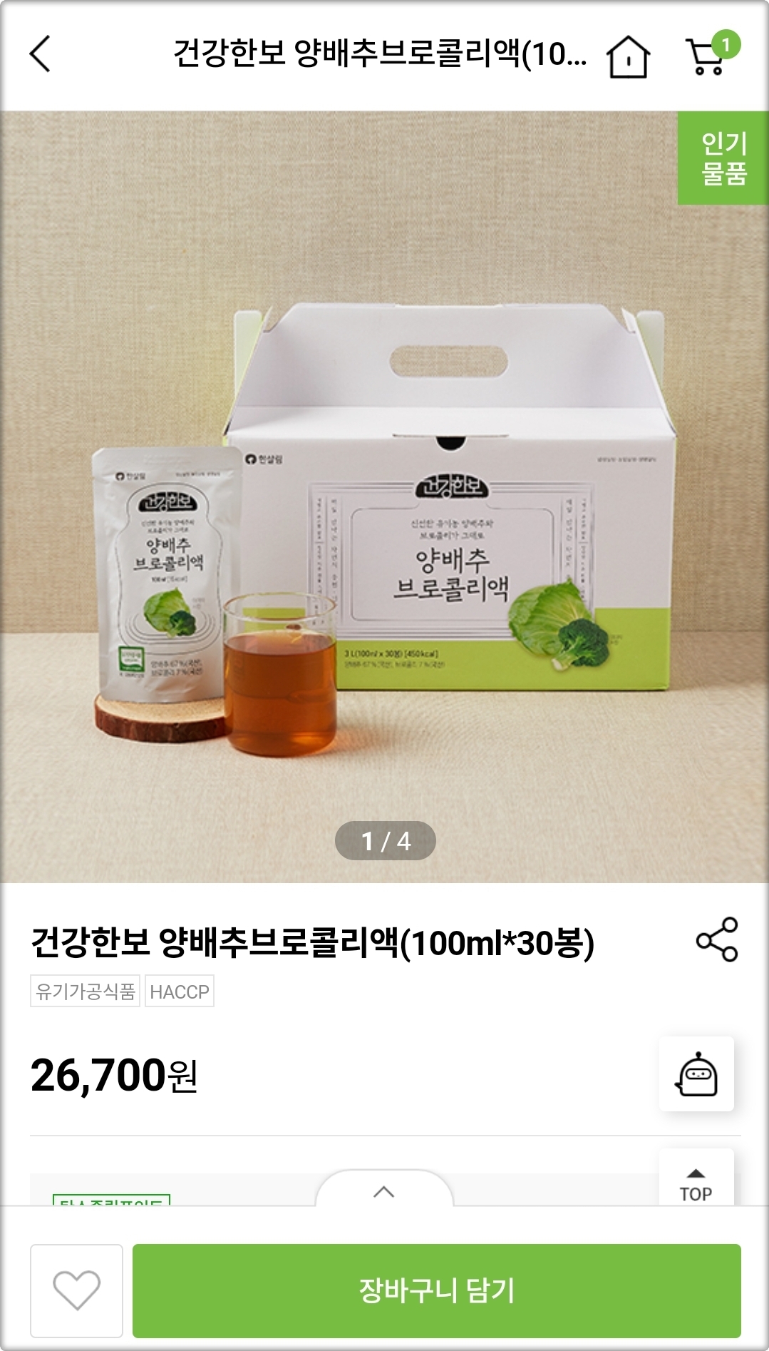 엄마가 늘 한살림 유기농 양배추즙만 드셔서 매달 한 박스씩 쿠O에서 구매해드렸는데요.