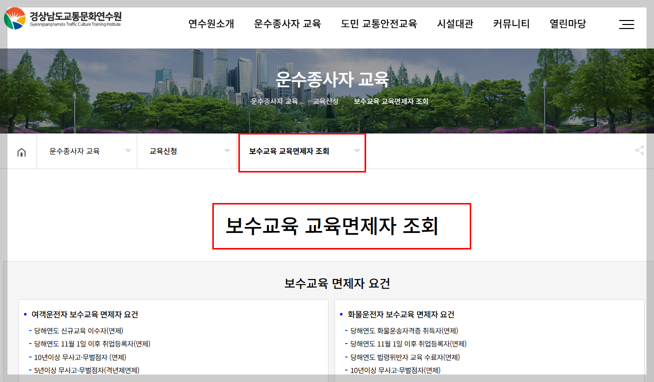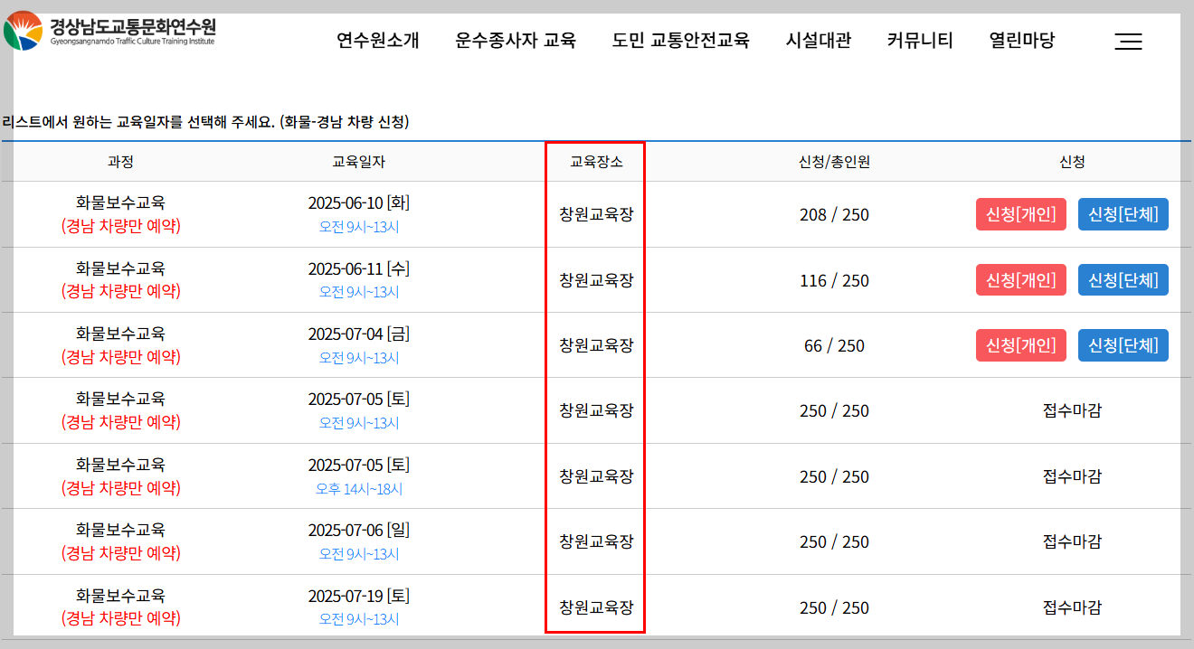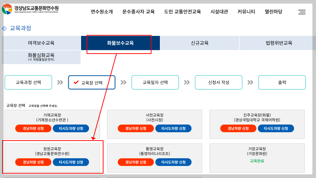 화물보수교육 창원 신청은 경상남도교통문화연수원 공식 홈페이지에서 가능합니다.