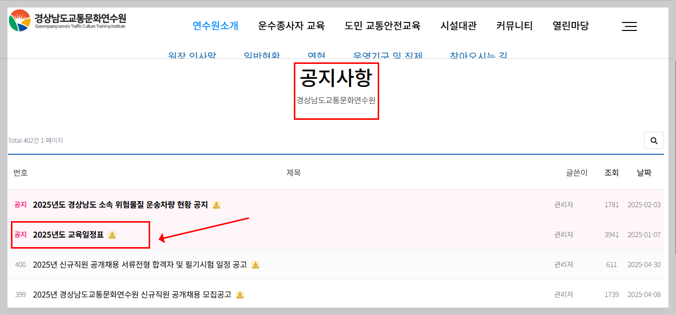 🔻경남교통문화연수원 / 공지사항 바로가기🔻