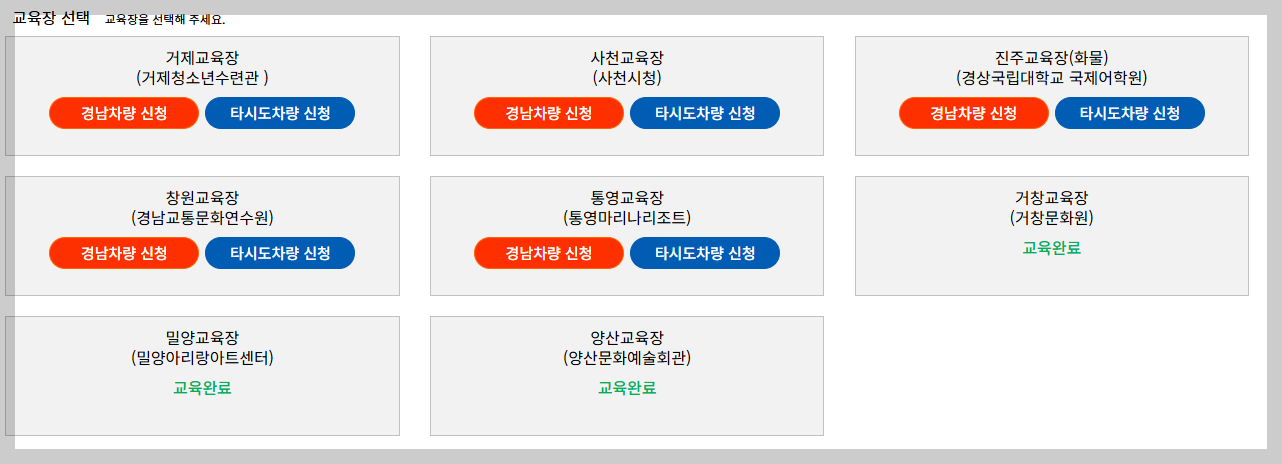 - 교육비: 경남 차량 등록자는 무료, 타시도 차량 등록자는 10,000원