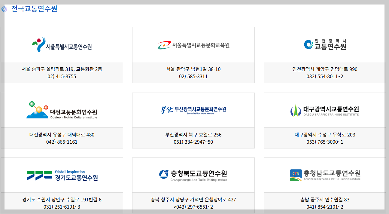 (전국 13개 교통연수원 홈페이지 바로가기)