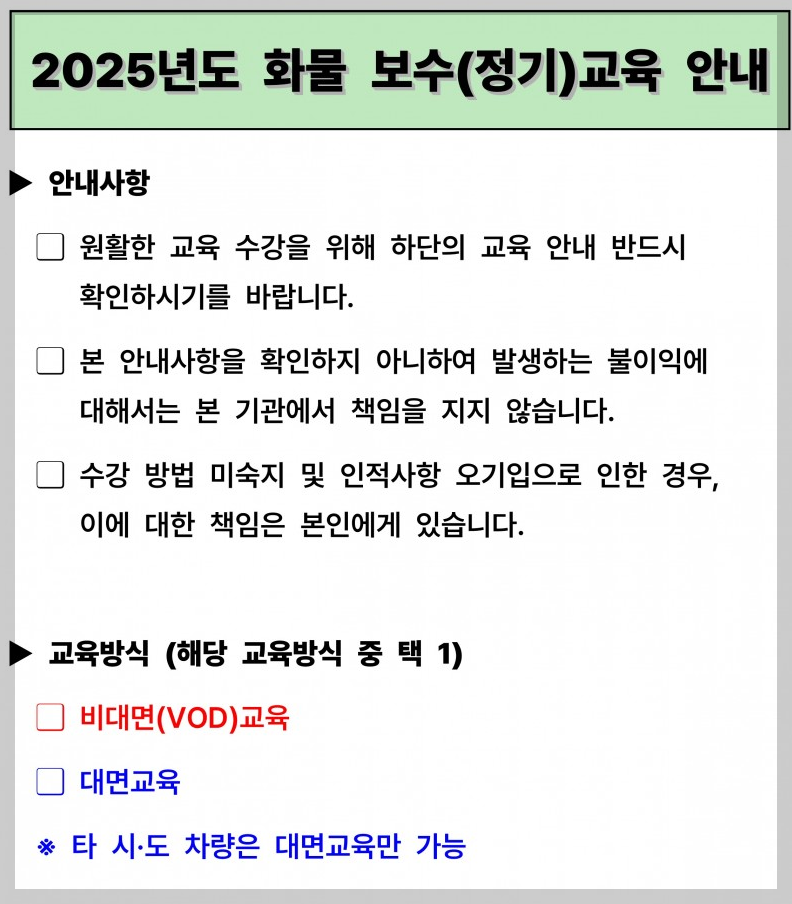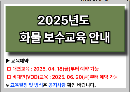 2025년에도 일부 지역에서 온라인(VOD) 보수교육을 운영하고 있습니다.