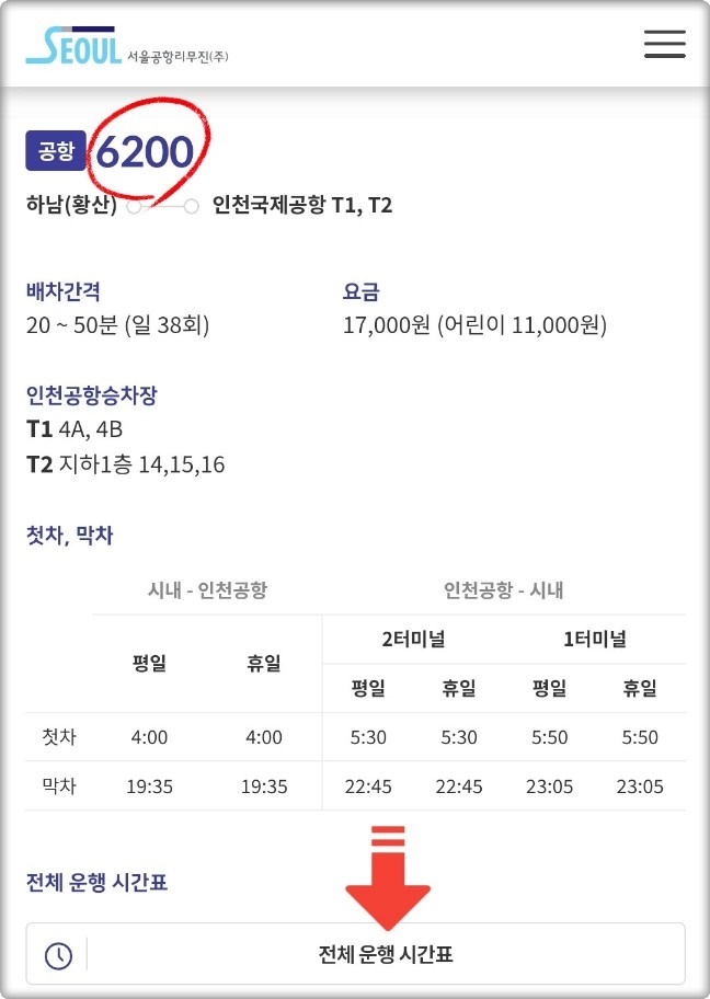 (인천공항 6200번 리무진 "최신시간표" 확인)