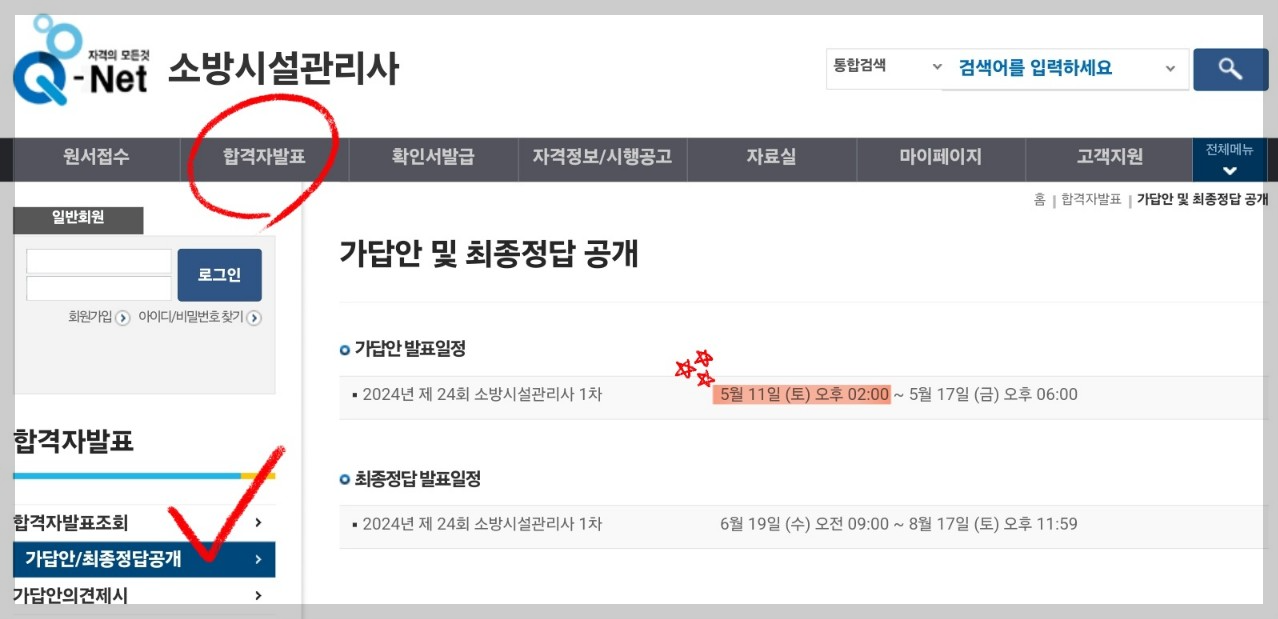 소방시설관리자 자격시험의 1차시험 가답안은 항상 당일에 발표가 되었습니다.