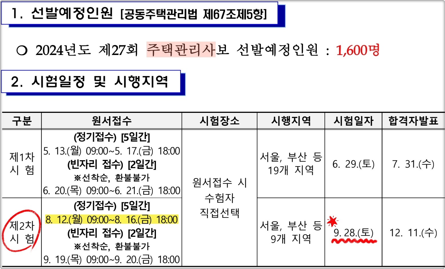 2. 27회 주택관리사보 시험일정