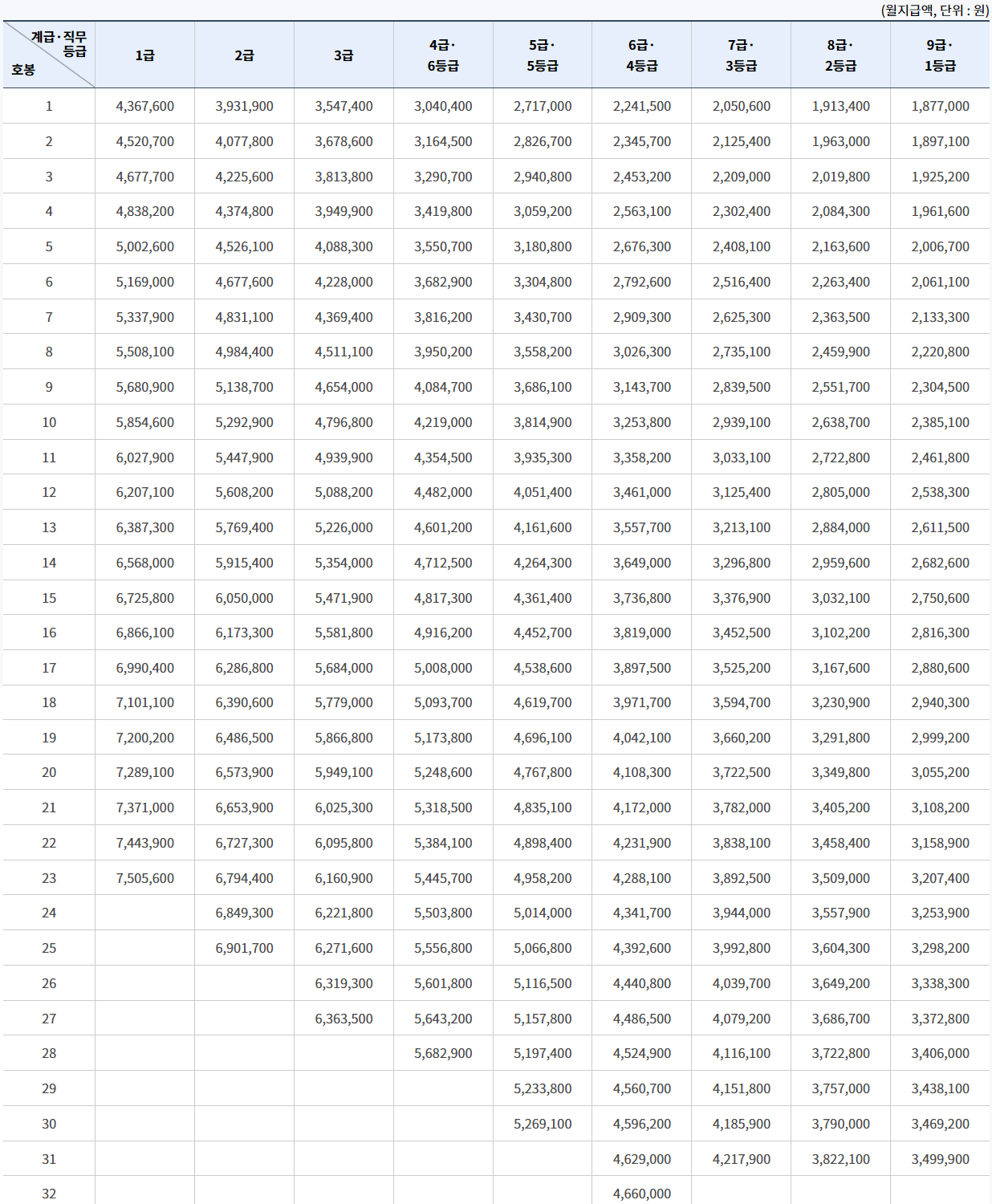 [출처: 별표3_일반직공무원과 일반직에 준하는 특정직 및 별정직 공무원 등의 봉급표]