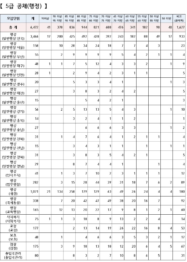 2. (행정) 5급 1차 최근 커트라인