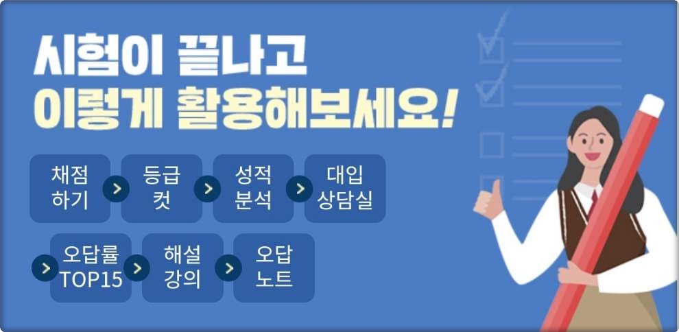시험이 끝난 직후 정답이 올라오기 전에 사전 채점을 이용해 보세요. 미리 답안을 입력해 두면 정답이 올라왔을 때 누구보다 "빠르게 채점 결과"를 볼 수 있습니다.