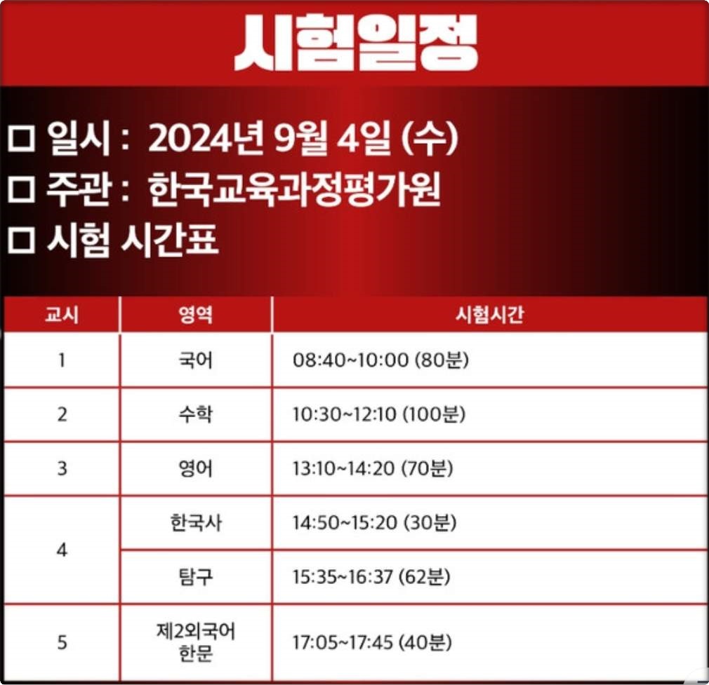 🔻2024년 9월 모의고사 시험일정