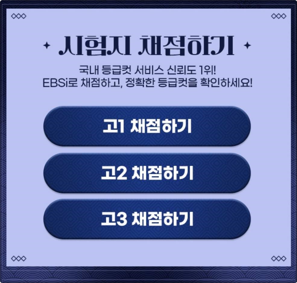 ‘EBSi 모의고사 페이지’에서 자신이 응시한 과목의 정답을 입력하면 자동으로 빠르게 채점할 수 있습니다.