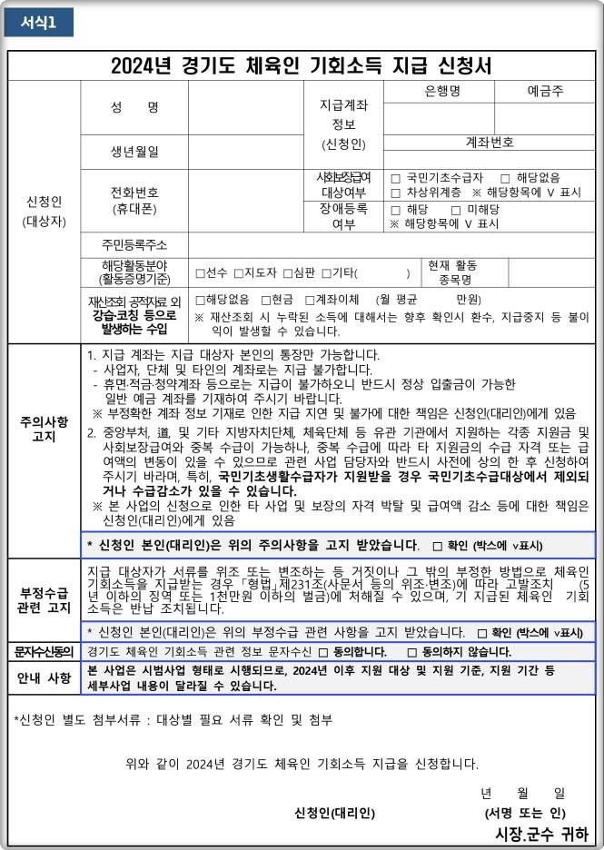 📌 경기도 공고문(2024년 체육인 기회소득 사업)