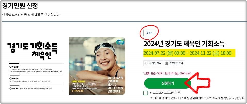 경기도 체육인 기회소득은 방문할 필요없이 아래의 공식 홈페이지에서 간편하게 온라인 신청이 가능합니다.