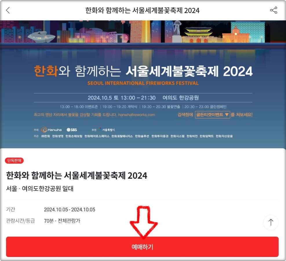 불꽃축제를 최고의 명당에서 즐길 수 있는 방법은 두 가지가 있습니다. 하나는 골든티켓 이벤트에 무료응모하여 당첨되는 것이고, 다른 하나는 티켓링크 사이트에서 유료티켓을 구매하는 것입니다.