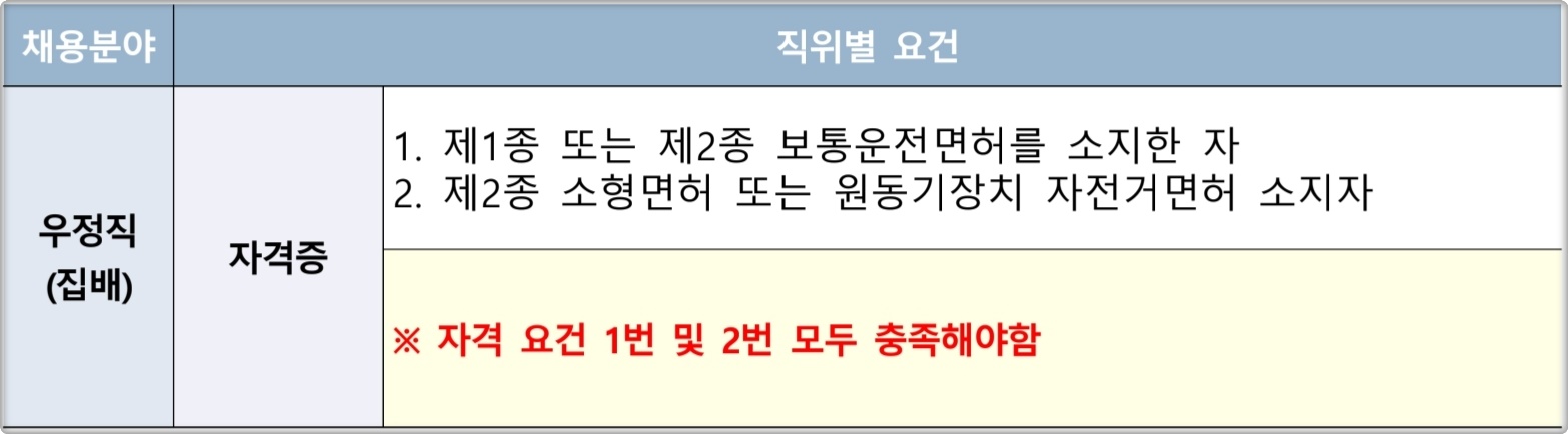 1) 우체국집배원 응시자격