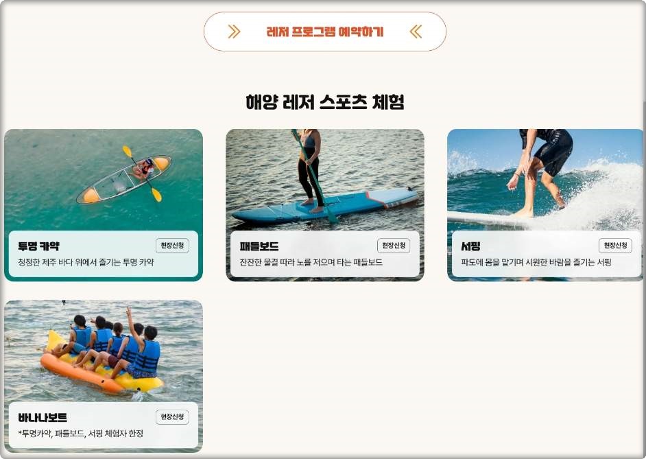 ※ 사전예약기간 외 모든 레저프로그램 '현장접수'로 진행
