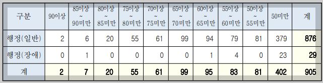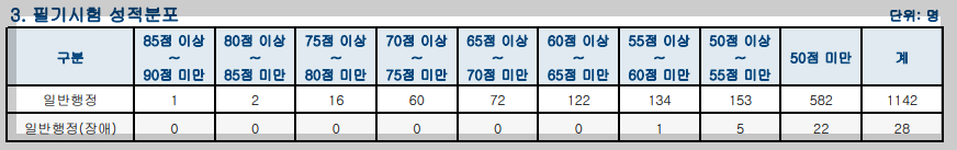 🔻🔻 2023년도 제21회 8급 공채시험 성적분포