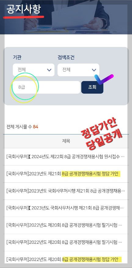 🔻🔻 2024년도 제22회 국회 8급 시험 정답 가안 확인