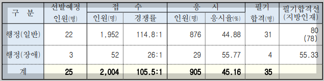 🔻🔻 2022년도 제20회 8급 공채시험 합격선