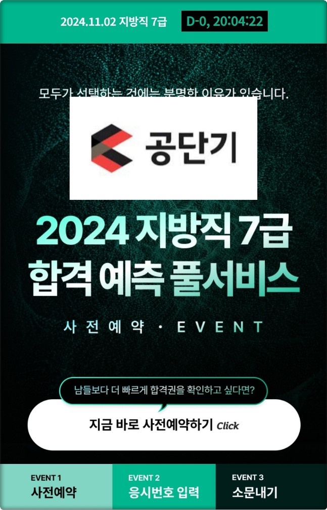 공단기는 11월 2일 지방직 7급 필기시험에 맞춰 합격 예측 풀서비스를 오픈했습니다.
