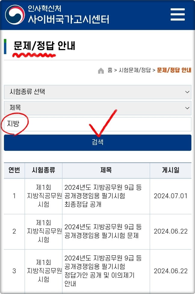 2024 지방직 7급 공무원 시험 '가답안' 안내