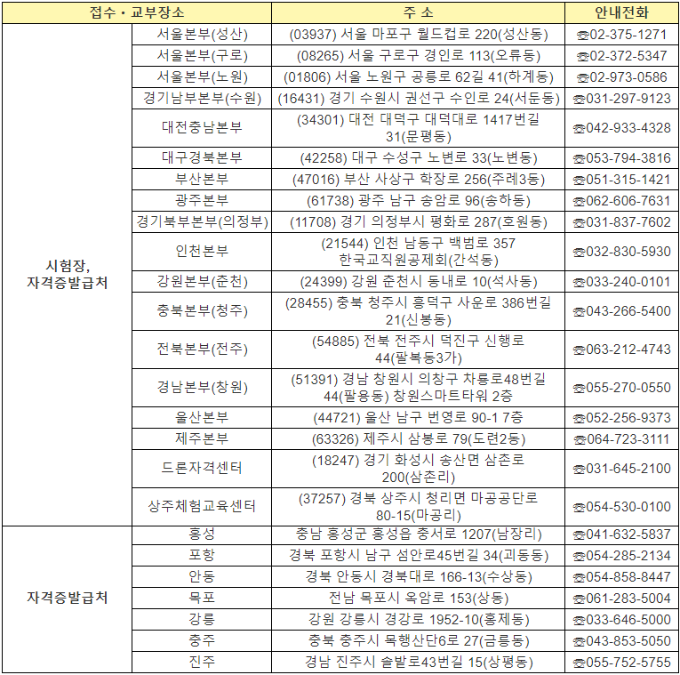 🔻🔻 자격증 (재)발급 가능한 지역본부