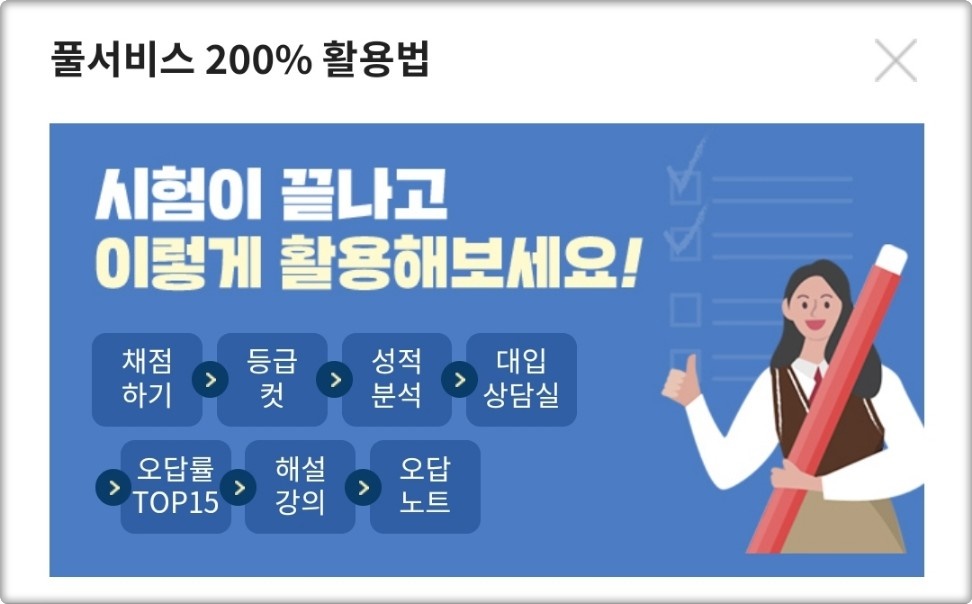아래의 공식홈페이지에서 정답 채점과 등급컷을 바로 확인하고, 수능 날까지 어떻게 준비할지 마지막 플랜을 세워보시기 바랍니다.