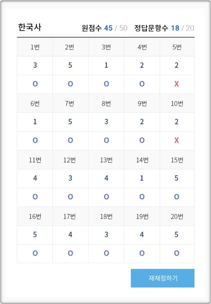 시험이 끝난 직후 정답이 공개되기 전에 사전채점 기능을 이용해, 미리 답안을 입력해 두면 정답이 공개되자마자 즉시 채점 결과를 확인할 수 있습니다.