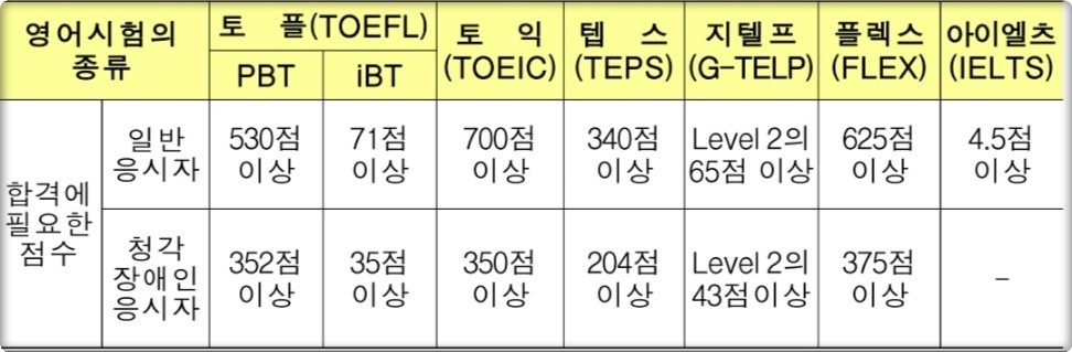 1️⃣ 영어시험 점수 요건