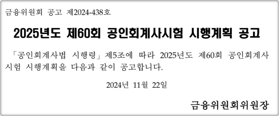2025년도 제60회 회계사 시험일정이 공고되었습니다.