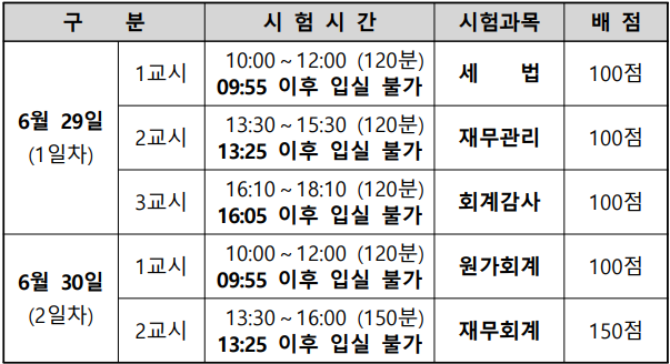 2025년 회계사 시험 시간표