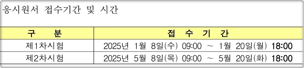 1️⃣ 제1차시험: 2025년 1월 8일(수) 09:00 ~ 2025년 1월 20일(월) 18:00