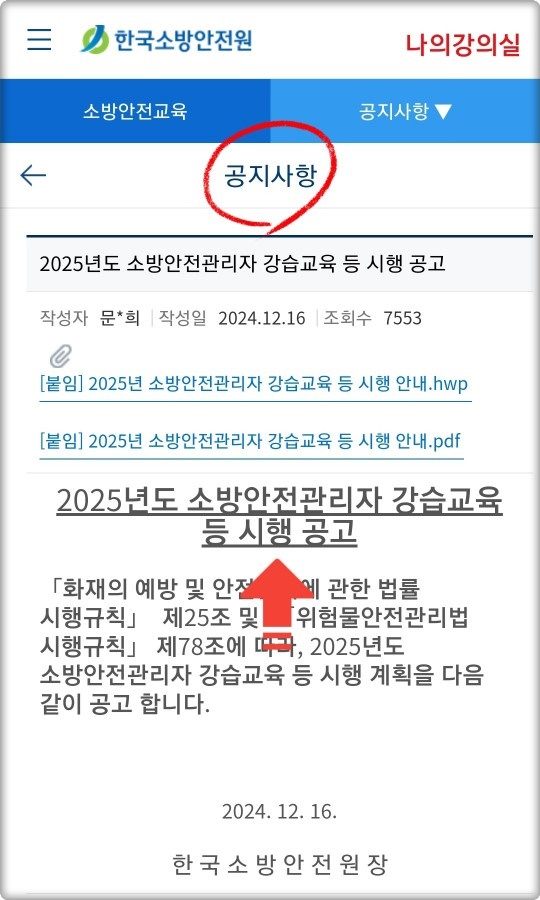 (2025년도 특급소방안전관리자 교육 > '공지사항')