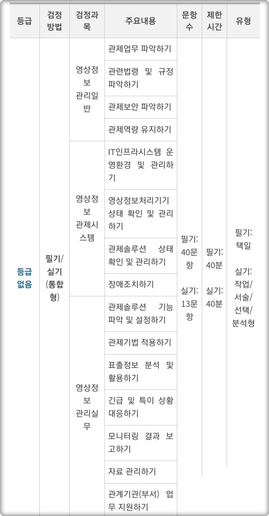 • 영상정보의 관리 및 보호에 필요한 이론적 지식과 실무적 능력을 평가합니다.