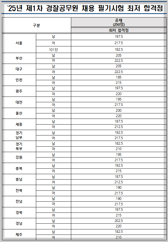 1. 2025 제1차 순경 필기 커트라인