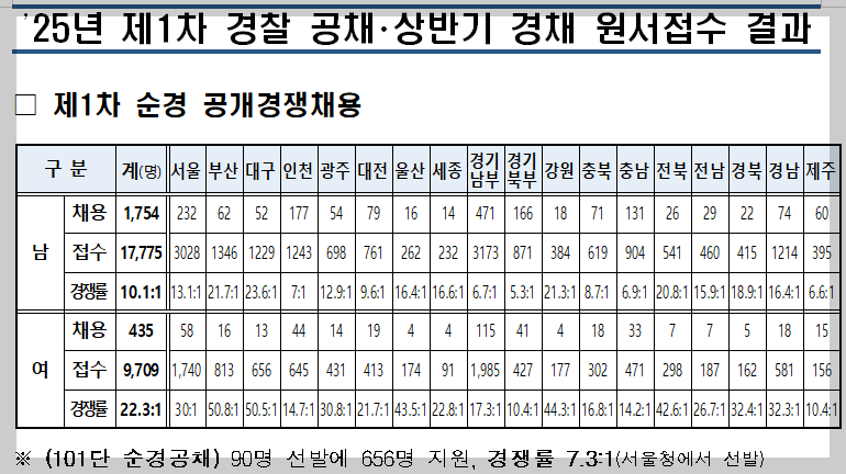 올해 상반기 진행된 2025 제1차 순경 공채 경쟁률을 보면,