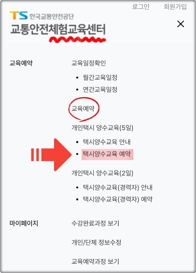(교통안전체험교육센터 / 개인택시 '양수교육' 예약)