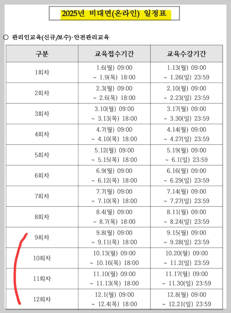 [TS한국교통안전공단배움터 홈페이지]의 공지사항에서 확인해보니, 2025년도 8월 이후 교육일정은 아래와 같았습니다.