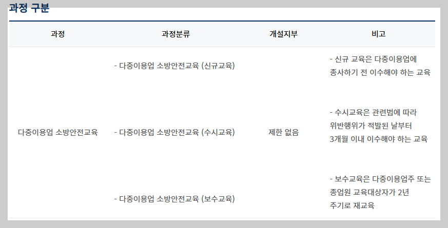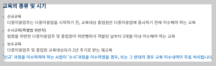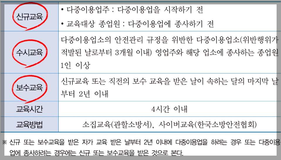 - 신규교육: 다중이용업소를 새롭게 시작했거나, 지위 승계를 한 경우
