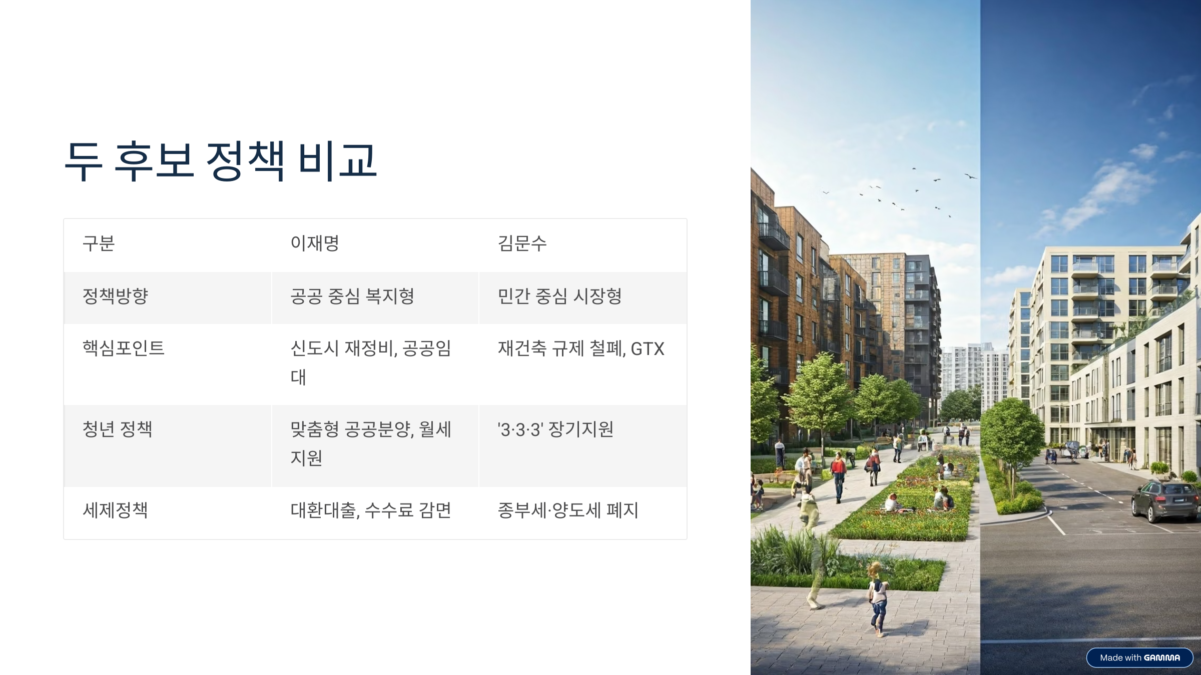 2025 대선후보의 부동산 핵심 공약을 비교확인해보세요.
