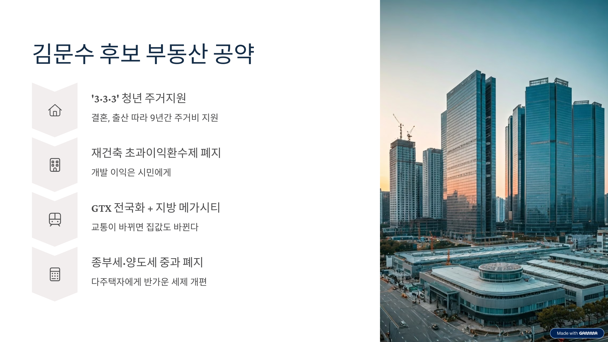- 정비사업 투자자 → 김문수 공약이 더 유리