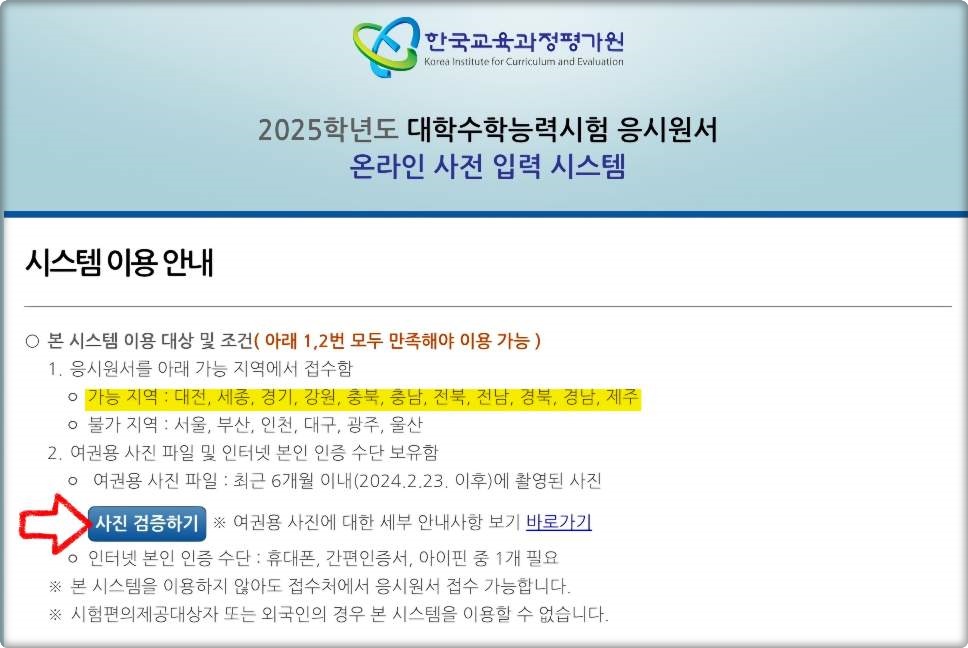 (한국교육과정평가원 '수능응시원서' 사전입력)