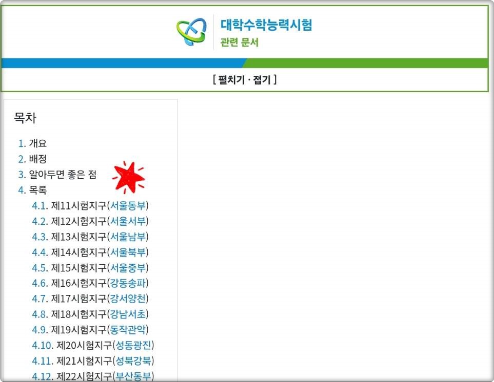 그럴 때는 관할 행정구역의 시험지구를 확인할 필요가 있는데요. 시험지구는 총85개 지구이며 행정구역별 "관할 고등학교"는 아래에서 확인하실 수 있습니다.