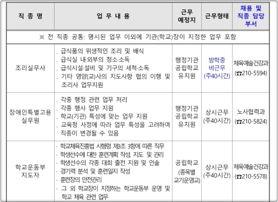 - 교육청 지시에 따라 직종 변경 가능