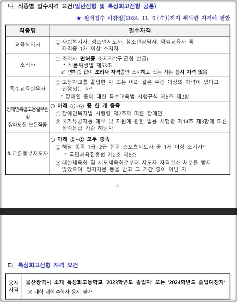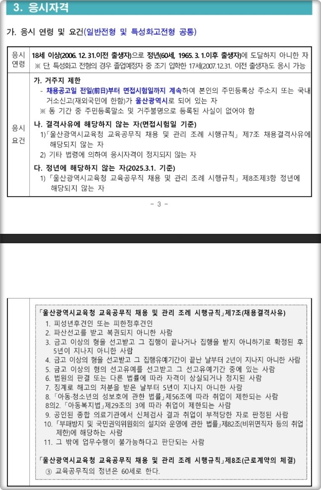1) 울산교육공무직 응시자격