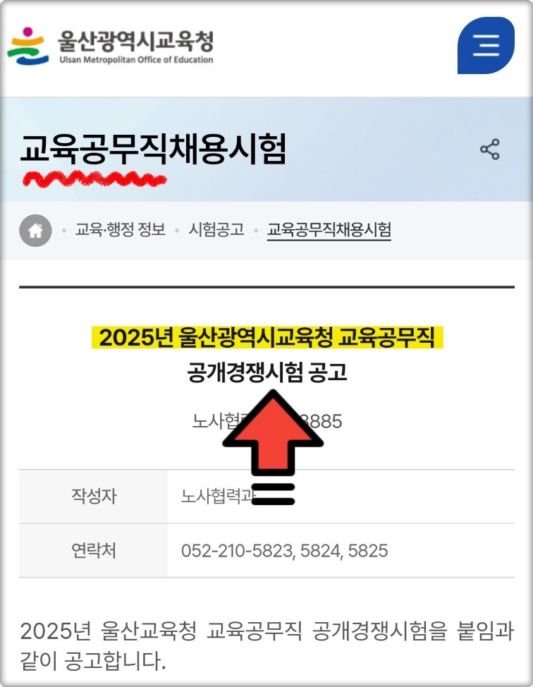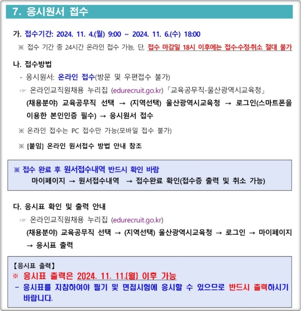 12월 7일에 시험이 예정되어 있더라도 혹시 모를 변동 사항을 대비해 11월 말이나 12월 초에 [울산 교육청 공식 홈페이지에서] 최신 공고문을 반드시 확인하시기 바랍니다.