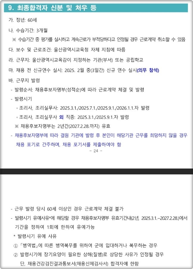 울산교육공무직 최종 합격자의 신분과 처우에 대해 알아보겠습니다.