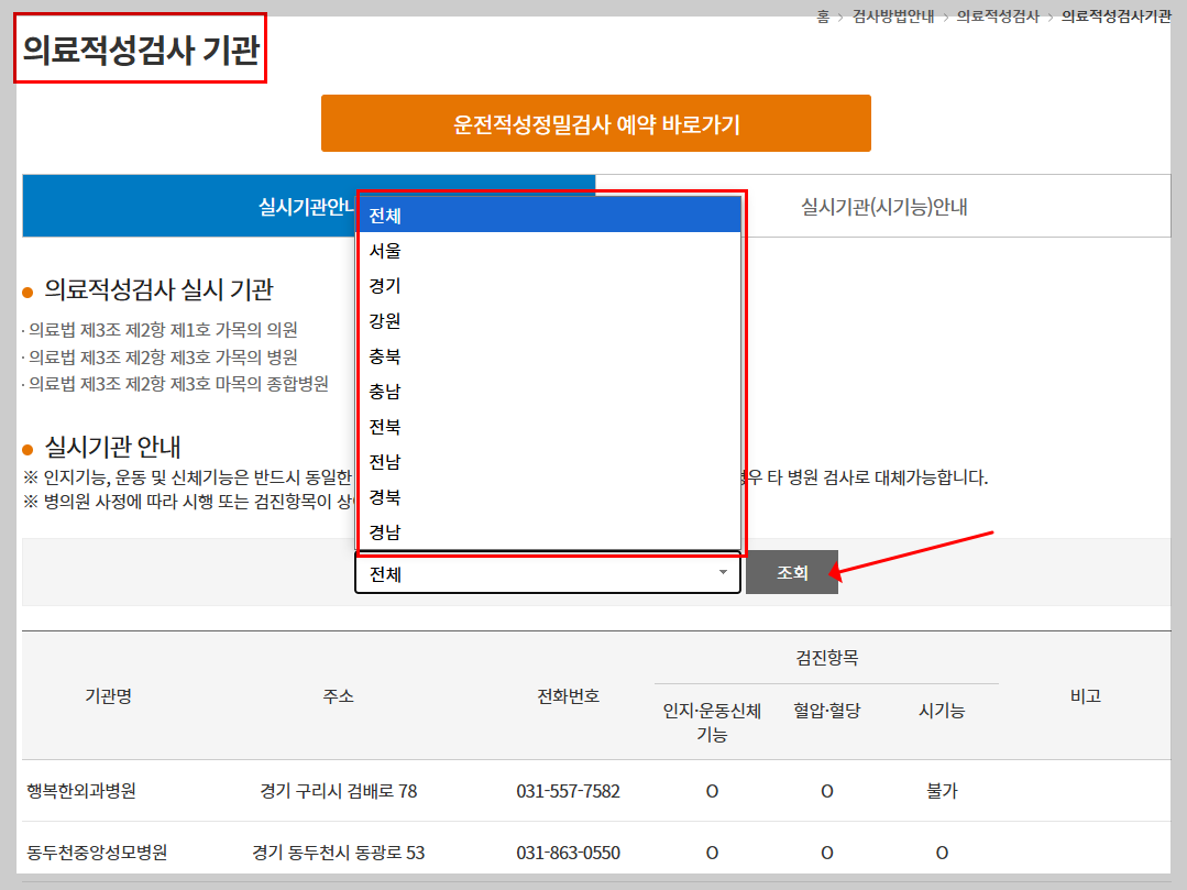 📌 의료적성검사는 공단에서 지정된 병원에서 가능하니, 지역별 병의원 현황을 참고하세요.