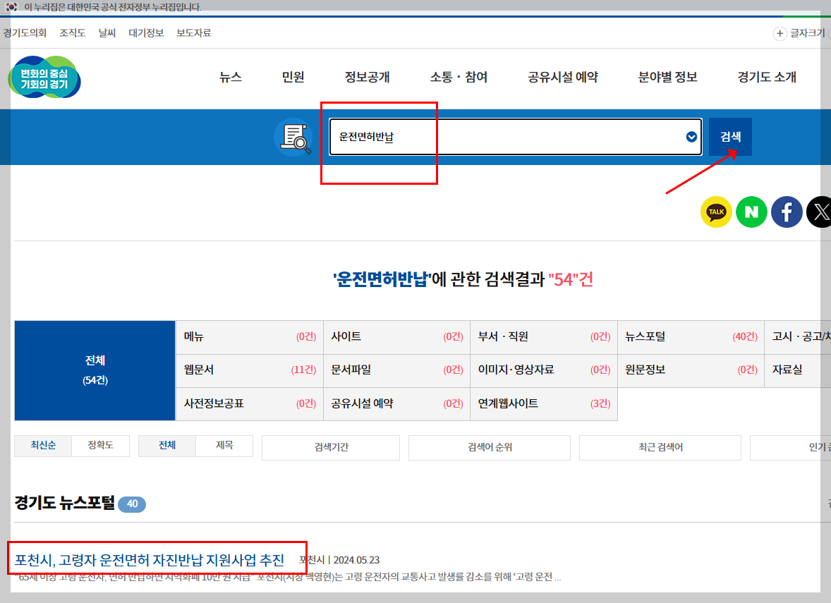 🔷고령자 운전면허 반납 혜택 조회방법