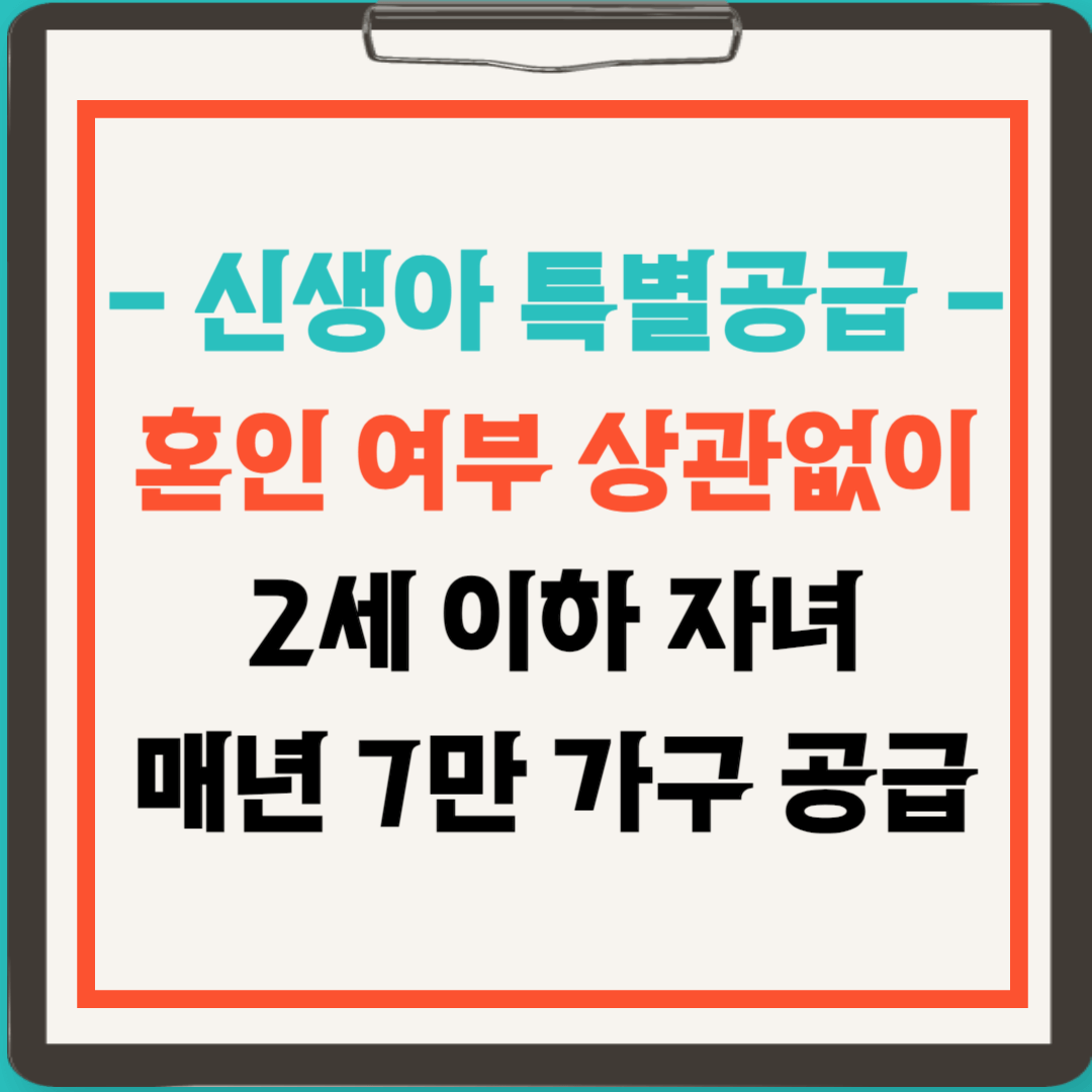 앞으로 출산 계획이 있는 분들에게 굉장히 좋은 소식이 있겠습니다. 바로 '신생아 특공'이 신설되었기 때문인데요. 신생아 특공은 혼인 여부를 따지지 않고 아이를 낳은 가구에 아파트 특별공급 자격이 우선 주어지게되는 것을 말합니다. 국내에서는 처음으로 '출산'에 초점이 맞춰진 주거 공급 방식으로 내년(2024년) 3월 시행을 목전에 두고 있는데요. 아이 계획이 있으신 분들은 잘 대비하여서 이번에 내집 마련의 기회를 노려보시면 좋을 것 같습니다. 오늘은 신생아 특공에 대해 정리해보겠습니다.